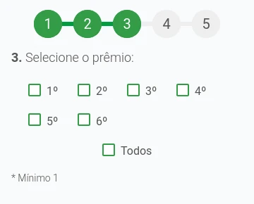 Você escolhe um número com 4 algarismos, de 0000 a 9999 no 1º, 2º, 3º, 4º, 5º e 6º prêmio, podendo selecionar todos, somente um ou um intervalo entre eles (potencial de retorno aumenta ou diminui de acordo com a quantidade selecionada).